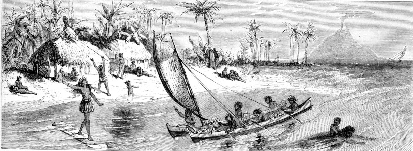 Scene in Polynesia. in Swinton, William: Grammar School Geography Ivison, Blakeman, Taylor, and Company New York and Chicago, 1881, page 105. |