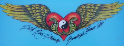 Burleigh Heads, Queensland. Winged heart decal, circa 2000. Image contributed by Jim Swinton, July 2006. |