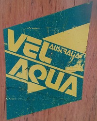Equipment (Surfboards) circa 1965? Victoria? A water sport manufacturer and supplier of various craft and accessories including water-skis, skim boards, aquaplanes and paddle-boards. Adhesive decal image emailed by George, early 2009. Vel Aqua Australia and Aquaplane decals thanks to Snazzy, February 2019. Also see Eva Braun on an aquaplane, Lake Wolfgangsee, 1938. Noted with thanks by Gary Lynch, February 2019. . |