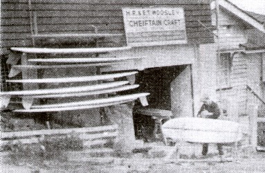 Kelvingrove, Brisbane http://www.woosleysurfboards.com/history.html Ray Woosley began manufacturing Canadian canoes in the late 1950s as "Chieftain Water Craft" before producing balsa surfboards. After experimenting with coolite, urethane and epoxy (coated with a Selleys barrier coat) he moved on to polyester and fibreglass as Gull Surfboards until 1965 when the name became Woosley Surfboards. 1964 Ray Woosley Rod Teys Fin with "W" decor, concave tunnel tail. 1965 Rod Teys 399 Competitor model - Lightweight - Concave - Noserider 1968 Les Purcell - contributed, with thanks, by Les Purcell. Decal image contributed by Jim Swinton, February 2006. ![]() |
