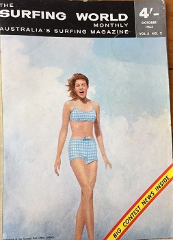| Surf Scene 1964 -Number 1. Editor :Jack Pollard Image: #1 Cover : Unknown. Short lived (possibly only one edition) released following the publication of Pollard's The Australian Surfrider in early 1964 with several of the photographs printed in both and an advertisement for the book on page 47. Highlighting female surfers, similar to Australasian Boardrider above, it includes advertisements: Amco Beachies Weiss Surfboards, Showroom- Broadway, Sydney and Factory- Marrickville The Dee Why Surf Shops, Long Reef and Bondi. Heenalu Special Board Shorts at Mick Simmons Sports Stores at 29'11 (29 shillings and 11 pence) |