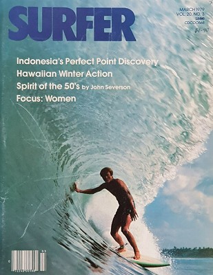 (USA) 1960 - Box 1028 Dana Point, California 92629 Editors : John Severson, Steve Pezman 1973, Originally produced as a film program for Severson's Surf Fever 1960, demand saw the magazine move to regular issues. It's artistic style, cross-pollination with surf films, longevity and commercial success set the benchmark and earn the title of the Father of Surfing Magazines. This is SURFERmag.com Image, top : Reproduction of Vol 1 # 1, 1960 Cover : Jose Angel at Sunset Beach. Photograph by John Severson Printed in Leuras page 132, Kampion page 92, Carroll page 34. Image, bottom : Vol 14 # 3, September 1973 Cover : Buzzy Kerbox at Velzyland. Photograph by Steve Wilkings See Perfect day : 40 Years of Surfer Magazine SURFER - VOL 12 - No 1 - 1971 SURFER - VOL 15 - No 1 - 1974 SURFER - VOL 15 - No 6 - 1975 ( MISSING BACK PAGE ) SURFER - VOL 17 - No 3 - 1976 |